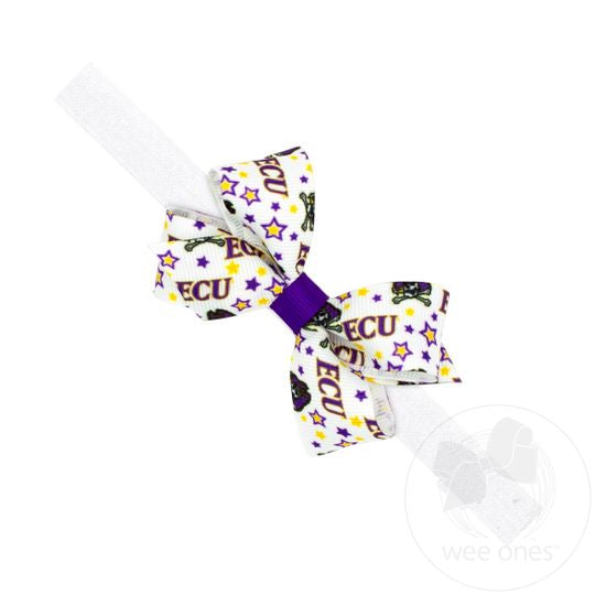 Mini Signature Collegiate Logo Print Grosgrain Hair Bow on Elastic Baby Band