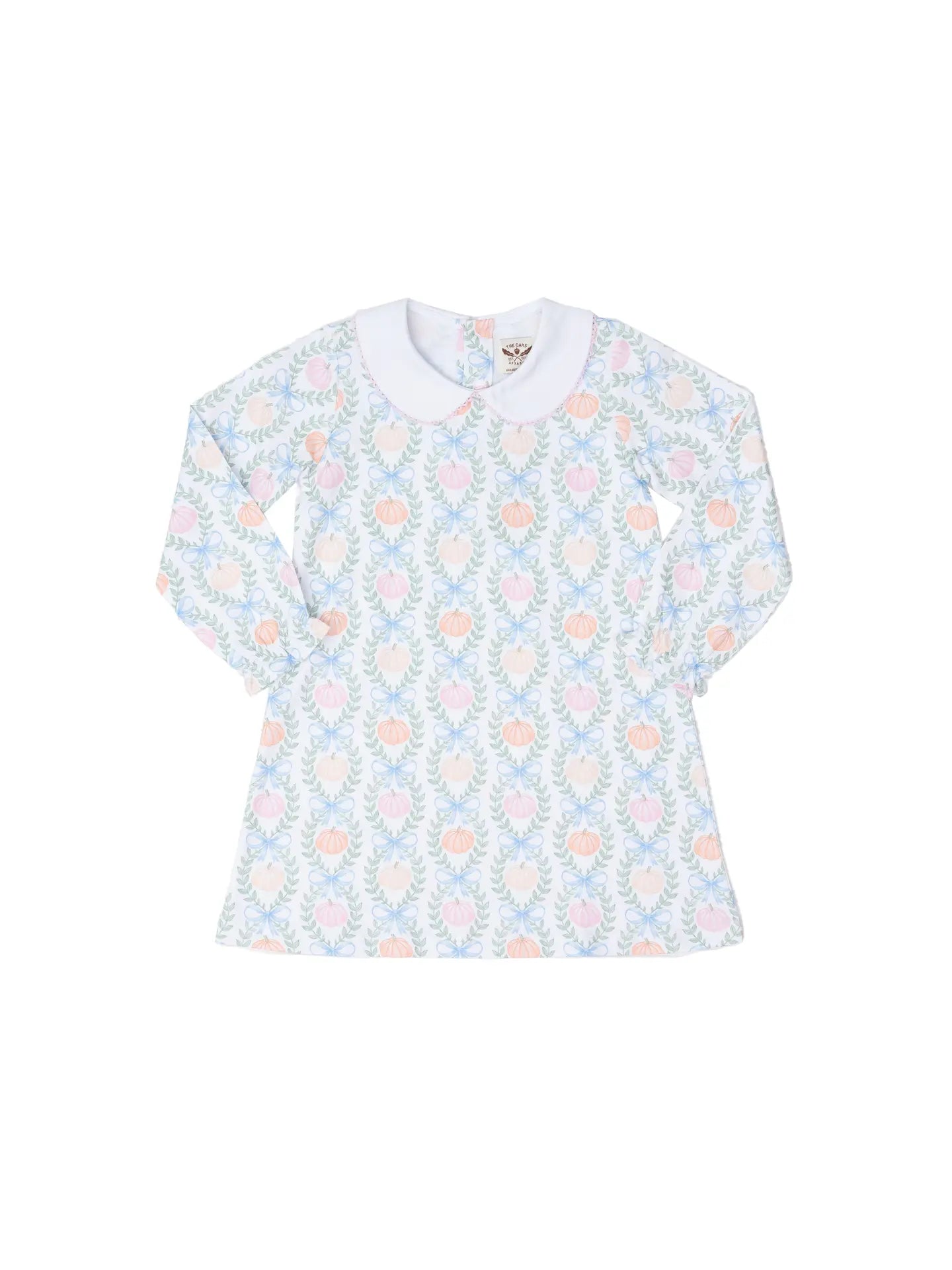 This Presley Kait dress is perfect for your little pumpkin! With its long-sleeved, collared design and girly fall colors, your little one will look totally stylish while staying warm. Perfect for the pumpkin block enthusiast in your life!