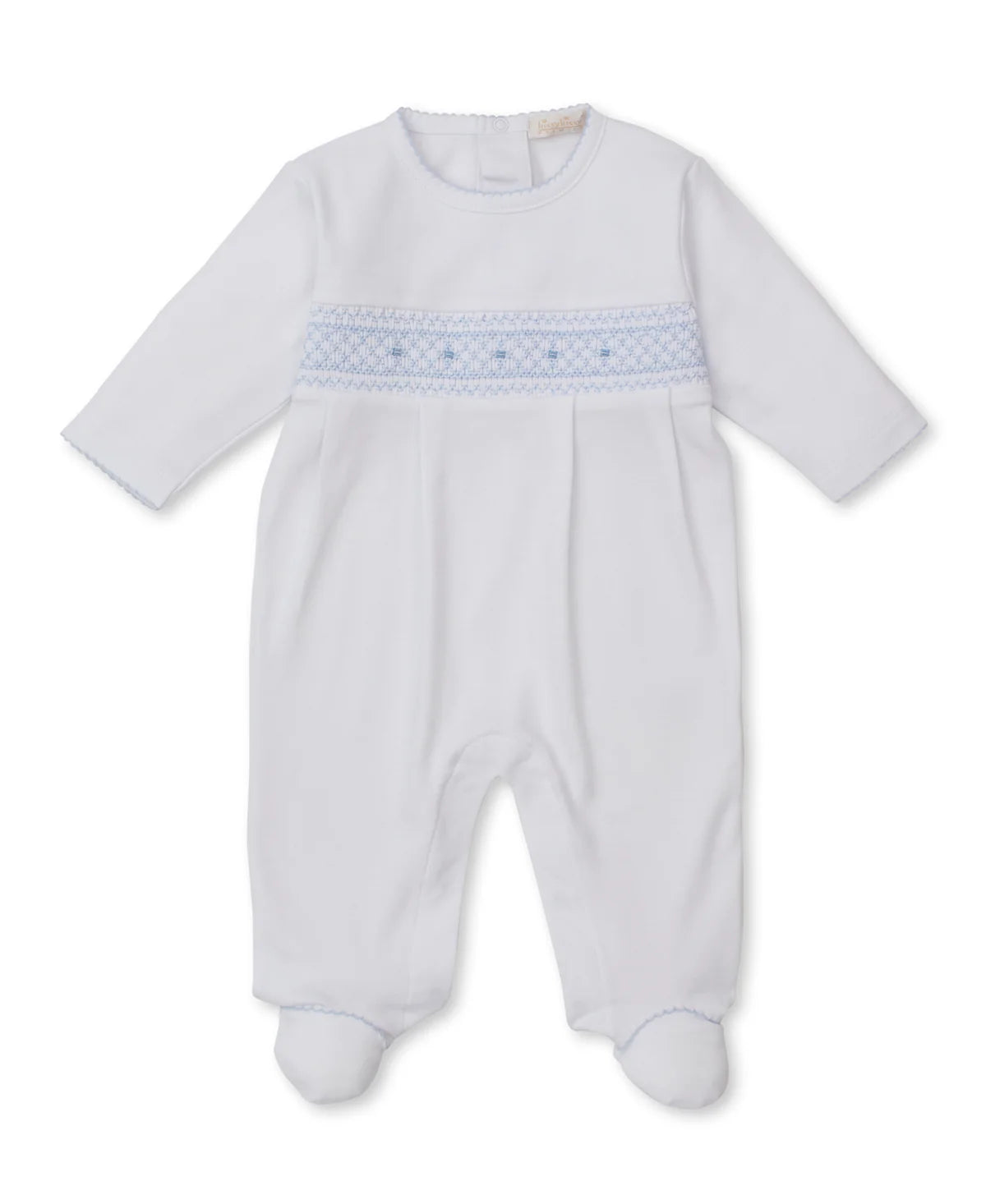 WHITE/BLUE SMOCKED FOOTIE